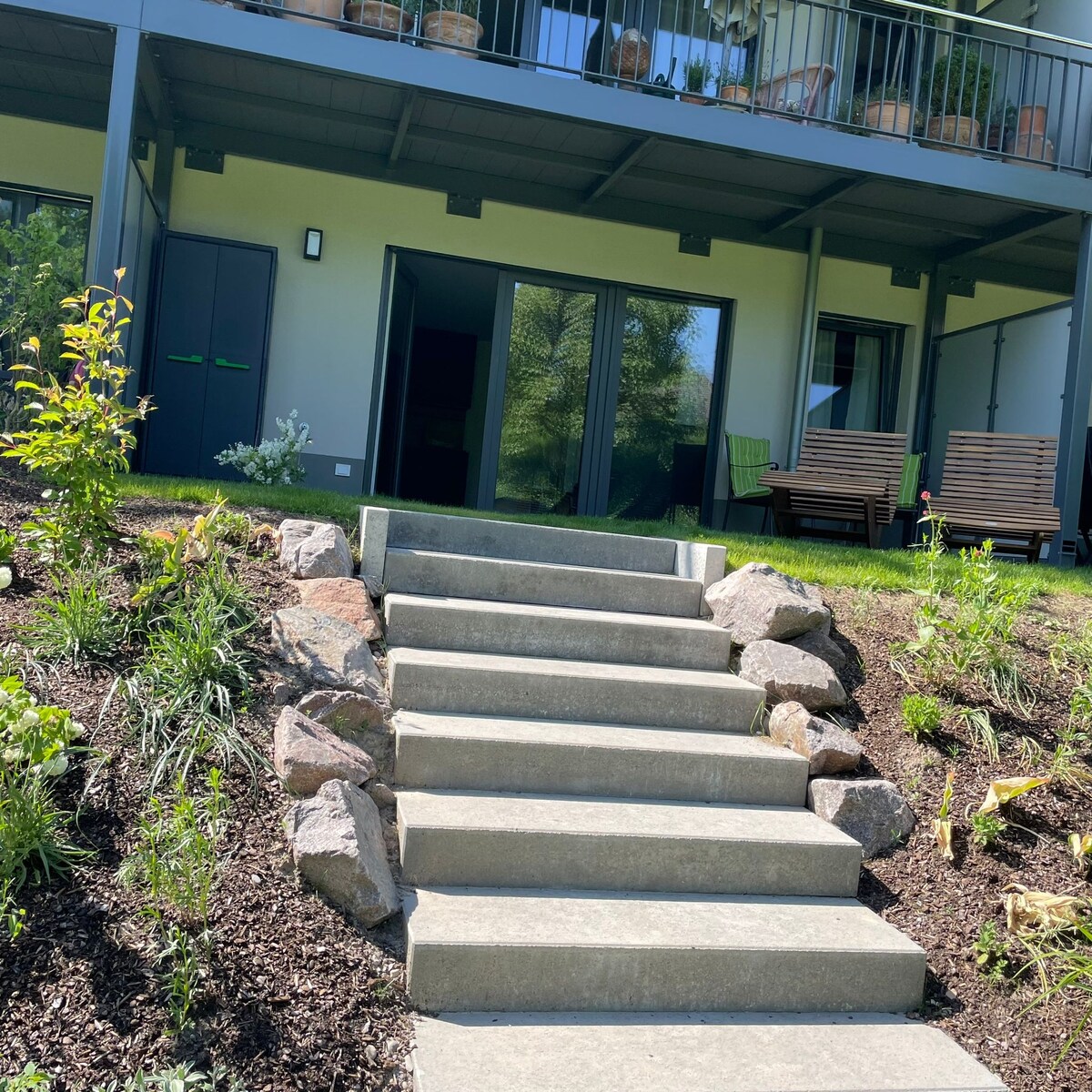patogiai įrengtas butas (3 kambariai, virtuvė, vonios kambarys, 89 kv. m) lauko zonoje su terasa ir atskiru įėjimu. Nuo 2022 m. su konservatorija. Apsuptas pievų, nuostabus panoraminis vaizdas. 10 minučių pėsčiomis iki kaimo centro. Maisto prekių parduotuvė (veikia nuo 7 val. iki 20 val., sekmadienio ryte nuo 8 val.). Kas pusvalandį susisiekimas autobusu su netoliese esančia traukinių stotimi kaimyniniame Kirchzarten mieste (apie 18 km). Švarcvaldas Centrinis daugelio veiklų atspirties taškas. Įsikūręs gamtoje, tarp Titisee ir Freiburg.