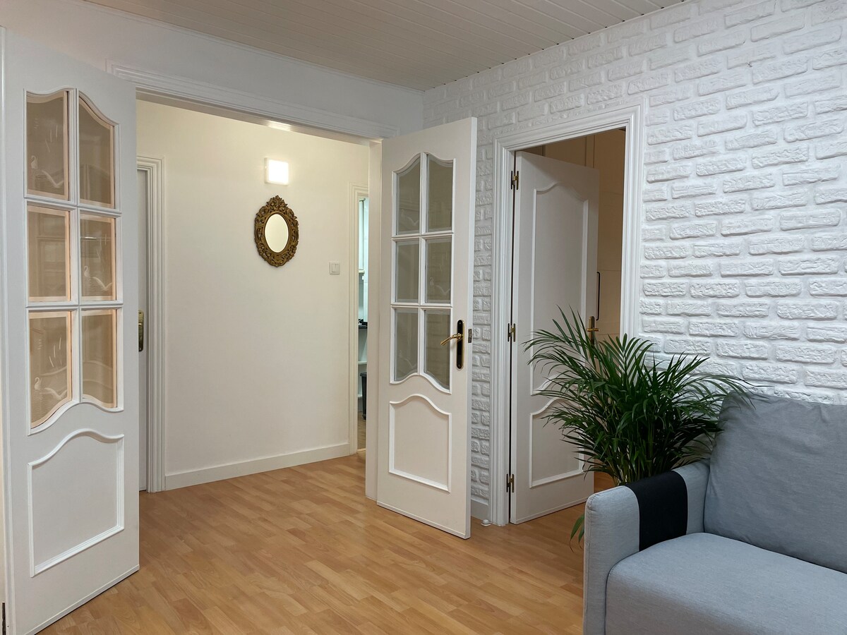 Apt. reformado de diseño en edificio tranquilo. A 1 min del tren, a 15 min del centro y cerca de la playa. Aparcamiento gratuito en la calle. Hipermercado y bares cercanos. 2 habitaciones dobles, 1 baño y cocina completa con todos los utensilios. 2 balcones. SmartTV, WiFi de alta velocidad (fibra óptica). Aire acondicionado, calefacción y ventilador. Lavadora y secadora. Ropa de cama incluida. Piso en primera planta sin ascensor.