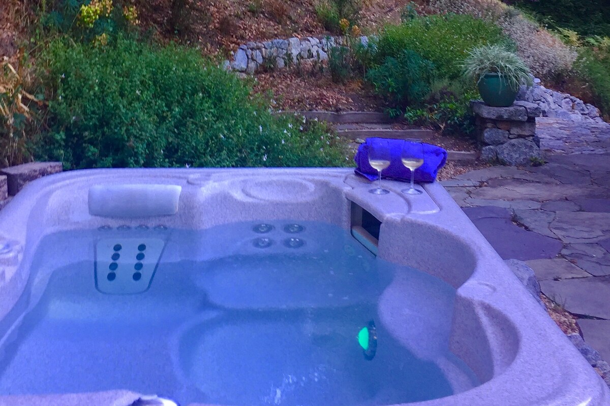 Apsistokite pas mus ir atsipalaiduokite! Išgirskite, kaip jums gieda paukščiai, stebėkite kolibrius ir KVĖPUOKITE! Išeikite pro duris, pasivaikščiokite po mūsų rajoną ir pamatykite senus raudonmedžius. Leiskite savo rūpesčiams atitrūkti stikline vyno prie ugnies.(Taikomi priešgaisriniai apribojimai) Pamirkykite sūkurinėje vonioje, tada suvyniokite į SPA chalatus. Jaučiatės nuotykių trokštantis? Išeikite iš savo durų į Nisene Marks valstijos parką. ANKSTYVO REGISTRACIJOS MOKESČIS YRA 45 $ ir automatiškai taikomas atvykstant iki 16:00 val.