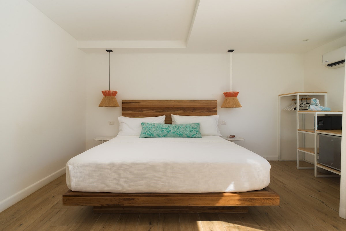 *Įskaičiuoti pusryčiai! Šiame erdviame viešbučio kambaryje „Good Life Lodge“ yra karališka lova, jis yra už 2 minučių kelio pėsčiomis iki paplūdimio ir už 1 minutės kelio pėsčiomis nuo miesto. Jis puikiai tinka visiems, norintiems būti pačiame centre (atkreipkite dėmesį, kad kai kuriomis naktimis sezono metu kaimyniniuose baruose gali būti vėlyvos nakties muzika). Galite naudotis bendrais viešbučio patogumais, pvz., vėsia sūkurine vonia, lauko baro zona, nemokama rytine kava ir mūsų nuostabiais darbuotojais. Turime 6 modernius viešbučio kambarius ir mūsų 2 aukštų namelį.