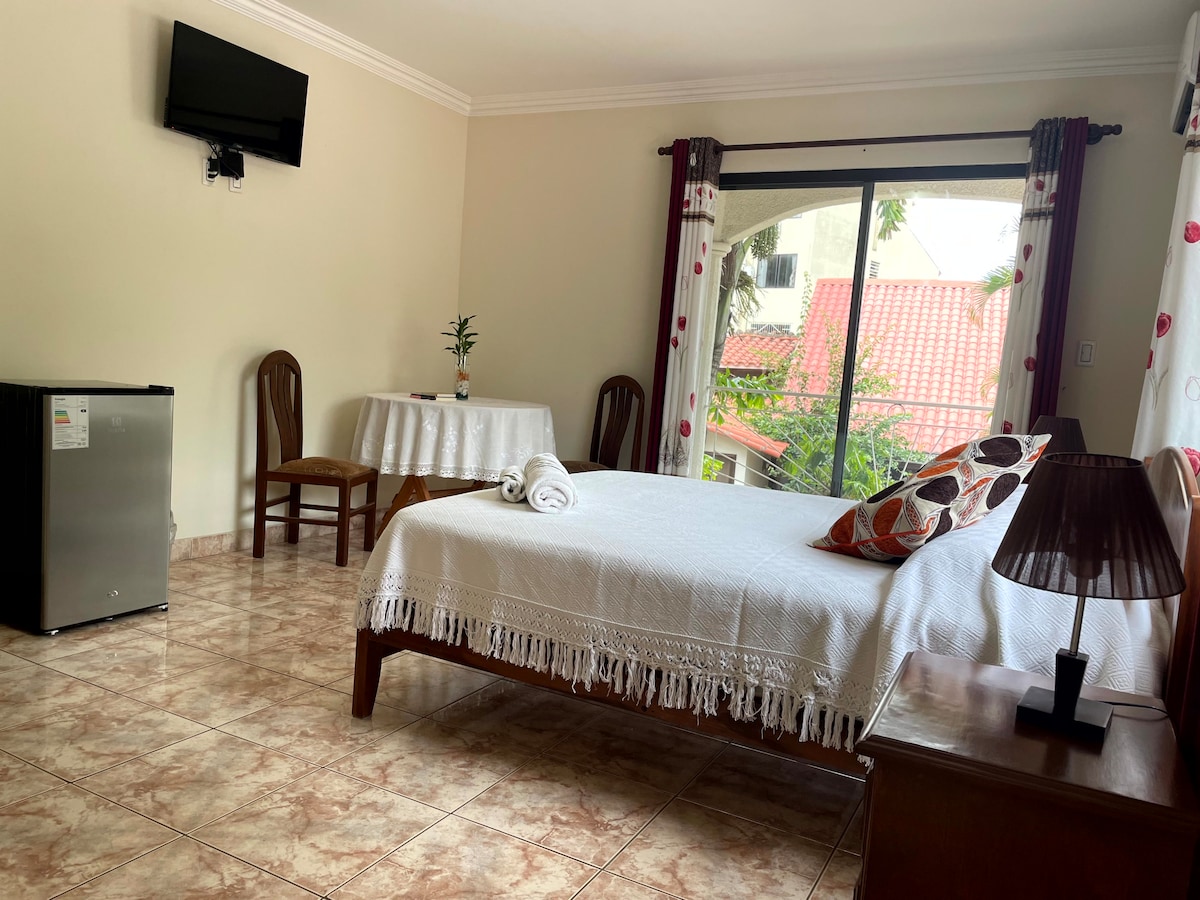Erdvus kambarys su oro kondicionieriumi, kabeline televizija ir Wi-Fi, kuriame yra virtuvė su šaldytuvu, mikrobangų krosnele, prieiga prie baseino, sūkurine vonia, teniso kortu, kepsnine ir parku, esantis labiausiai privilegijuotoje Santa Kruso vietovėje, 20 min. nuo miesto centro, su viešosiomis ir privačiomis transporto priemonėmis. Jis taip pat yra už 15 min. kelio nuo Viru-Viru oro uosto. Anglų kalba