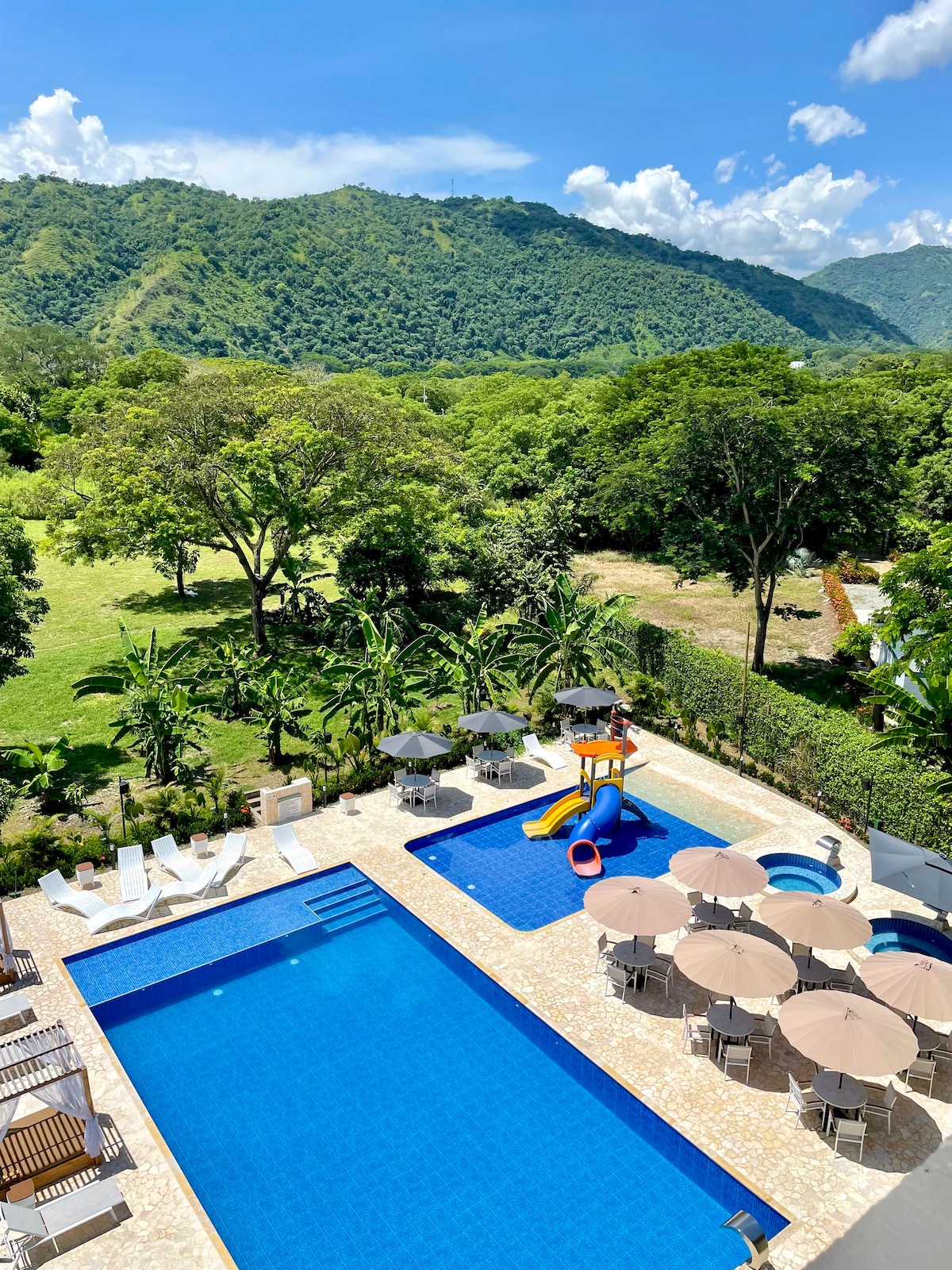 Nuestro espacio es un paraíso escondido rodeado de Bosque seco tropical, nuestro lago es el más grande de la zona 21 hectáreas donde podrás disfrutar de un ecosistema al rededor del lago y te sorprenderá encontrar un lugar lleno de naturaleza, clima Caliente 400 sobre el nivel del mar, piscinas y una piscina Bar donde podrás disfrutar de tus cocteles y un combinación ideal entre ambiente tropical y naturaleza, encontraras habitaciones con aire acondicionado, Tv, baño y las comodidades básicas.