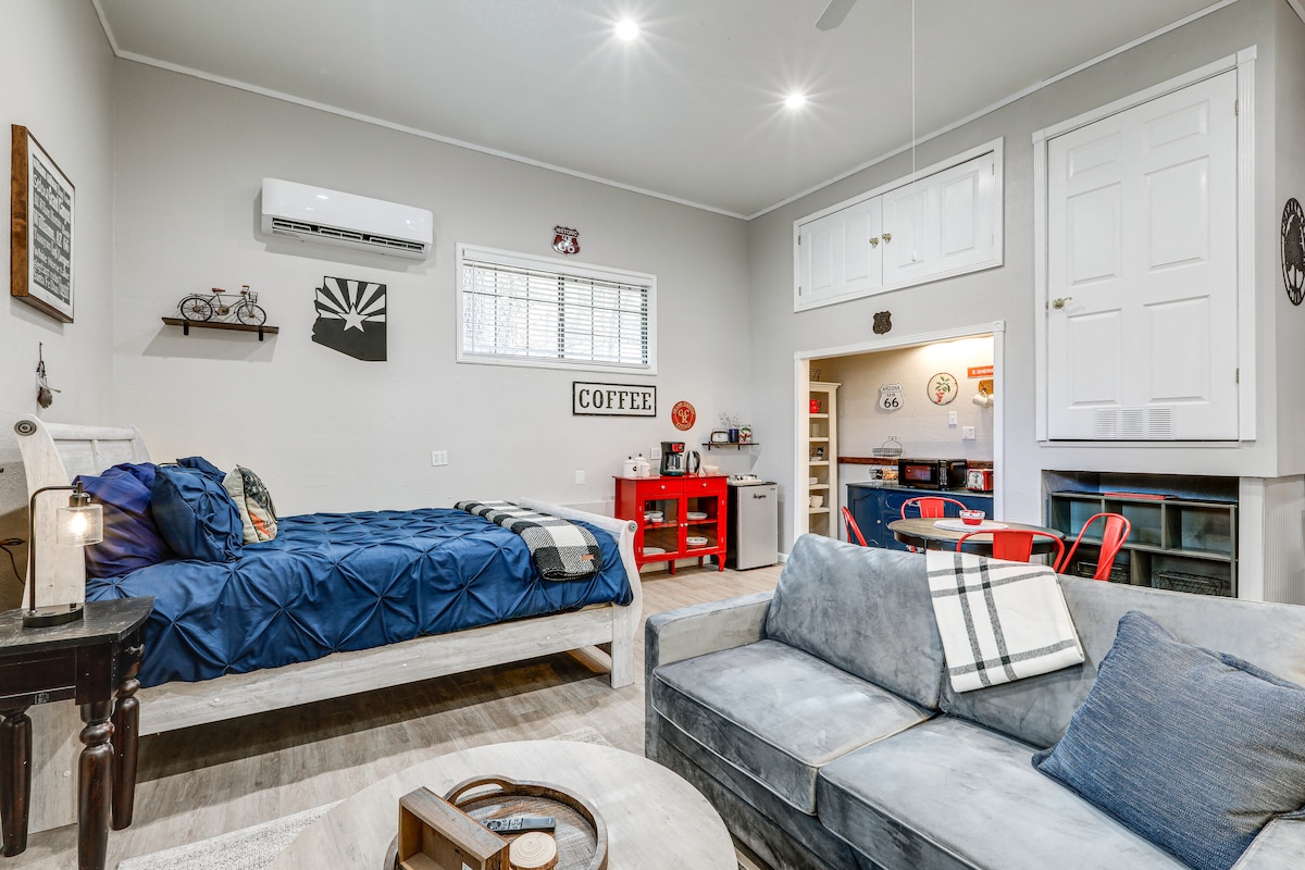 Patirkite Grand Canyon Wine Co Airbnb. Ši erdvė yra tiesiai už mūsų degustavimo kambario. Tai puiki vieta atvykti, atsipalaiduoti ir pasimėgauti vietiniu „Arizona“ vynu ir „Route 66“! Tai seni istoriniai studijos tipo apartamentai su moderniu akcentu. Yra dvigulė lova ir dvigulė ištraukiama sofa, virtuvėlė, vonios kambarys ir biuro erdvė. Turime išmanųjį televizorių su prieiga prie kelių programėlių, kad galėtume žiūrėti tai, ko norite.