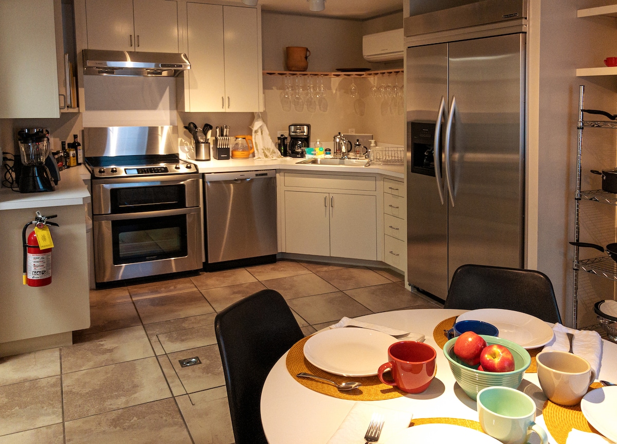 Vos už kelių žingsnių nuo E. Palace Avenue, už 10 minučių pėsčiomis nuo Santa Fė centrinės aikštės, sveikiname atvykus į 2 Casas Martinez. Mėgaukitės šiuolaikišku, švariu dekoru, privačiu įėjimu, keliais langais ir geru apšvietimu; 2 miegamaisiais su voniomis ir didelėmis dušo kabinomis; virtuve su aukštos klasės prietaisais. Unikalios daugumos miesto centro būstų ypatybės: oro kondicionierius, skalbyklė / džiovyklė, didelis plokščiaekrankių išmanusis televizorius, nemokamas spartusis internetas, tyli vieta ne gatvėje, automobilių stovėjimo aikštelė ne gatvėje. Atkreipkite dėmesį, kad bendra gyvenamoji erdvė ir 1 lova / vonia yra viršuje.
