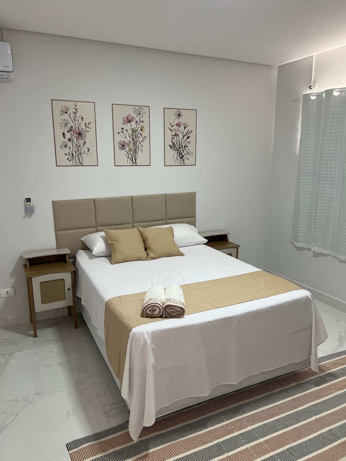 Gražus butas, viršutinis miesto namo aukštas, erdvus ir erdvus, su balkonu, viskas nauja, vieta su puikia vieta, miesto centre (už 1000 metrų nuo Brasil). Jame yra 2 miegamieji, 2 viengulės lovos ir 1 dvigulė lova, pilna virtuvė, didelis vonios kambarys, aptarnavimo zona su baku, drabužių linija, stalas ir lygintuvas, plaukų džiovintuvas, išmanusis televizorius, netflix, Wi-Fi.
