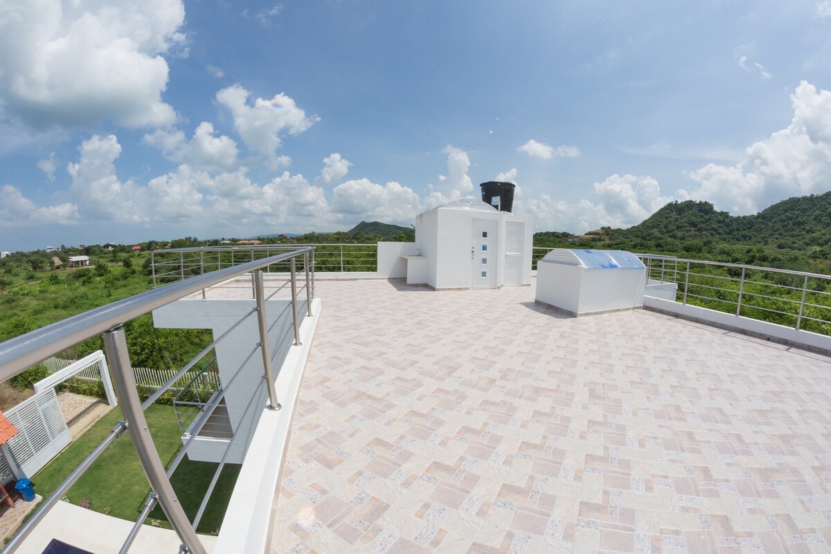 Pabėkite į vilą su privačiu baseinu, gamtos ir komforto apsuptu prieglobsčiu. Mėgaukitės unikaliu potyriu lofto tipo aplinkoje su karališko dydžio lova, vonios kambariu su vaizdu į dangų ir lauko dušu po žvaigždėmis. Mėgaukitės Viduržemio jūros regiono virtuve, puikiai tinkančia dalytis ypatingomis akimirkomis. Terasa su žaluma ir šiltu apšvietimu sukuria stebuklingą atmosferą poilsiui vos už 25 minučių kelio nuo Barankiljos.