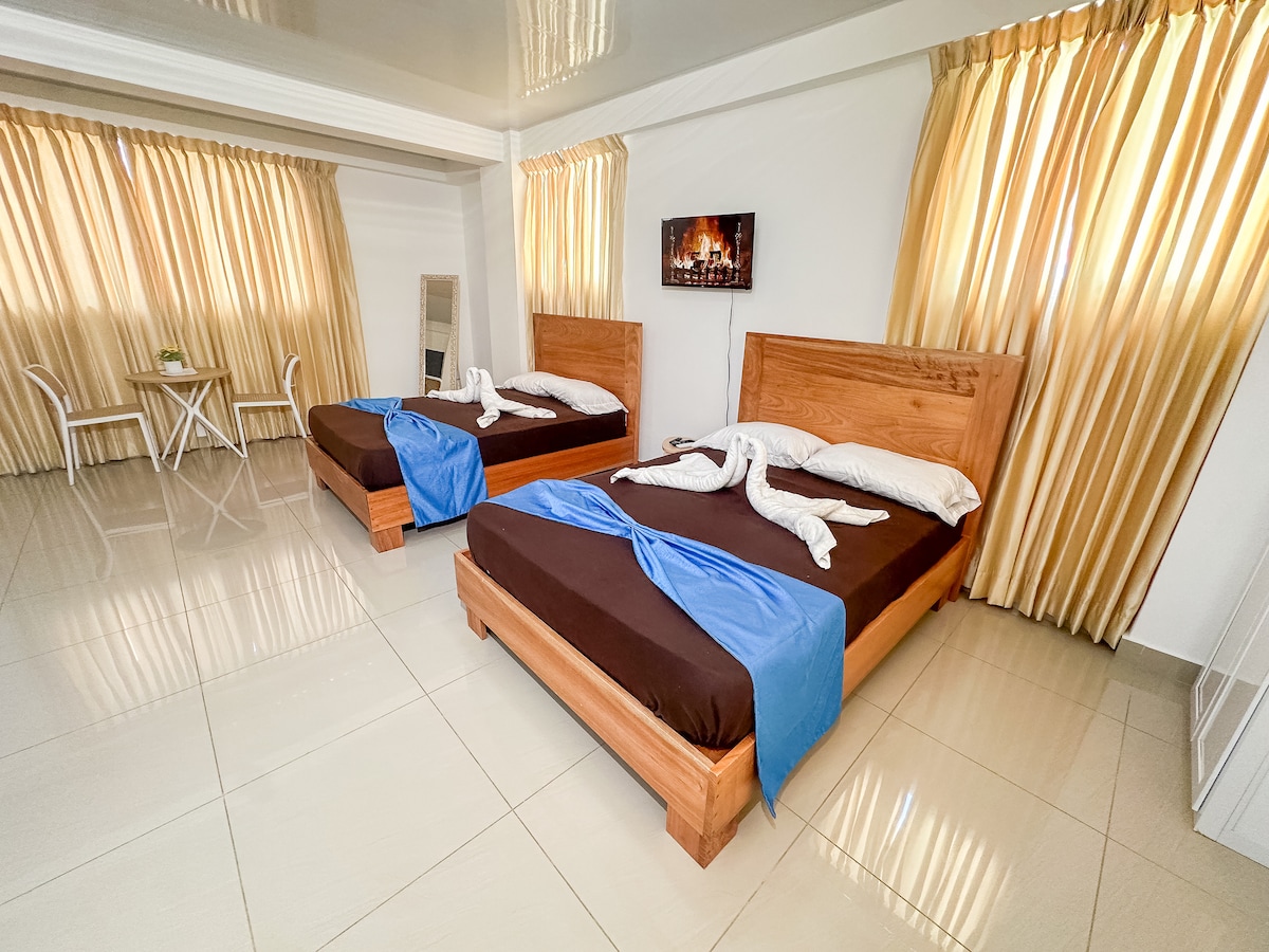 Nepriklausoma 40 m² studija su miegamuoju, kuriame yra dvigulė lova, stogo ventiliatorius ir, žinoma, oro kondicionierius, virtuvė su kaitlentėmis, šaldytuvas, mikrobangų krosnelė, svetainė su sofa-lova tik vaikui, televizorius su kanalais iš viso pasaulio ir, žinoma, vonios kambarys su dušu, tualetu ir kt. netoli Santjago centro; su uždara automobilių stovėjimo aikštele ir gražiu baseinu su vaizdu į atogrąžų sodą.