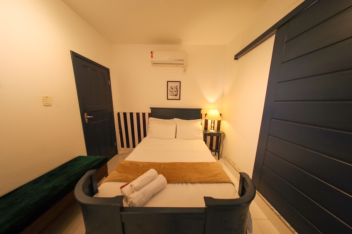 Uma suíte de casal localizada em andar superior, com varanda e que oferece uma atmosfera especial para momentos relaxantes. Equipada com uma cama de casal, ar-condicionado, frigobar, Smart TV e Wi-Fi gratuito, esta suíte combina praticidade e aconchego. O banheiro privativo inclui toalhas de banho e rosto, além de itens de higiene, garantindo conforto extra durante sua estadia.