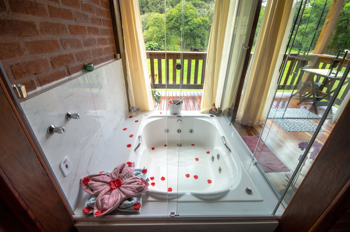 Atraskite Serra da Mantiqueira magiją mūsų žavingame romantiškame poilsio namelyje! Santo Antônio do Pinhal vešlioje gamtoje turime puikią kelionę įsimylėjusioms poroms. Įsivaizduokite, kad atsipalaiduokite jaukiame poilsio namelyje, apsuptas didelių kalnų ir gryno oro. Čia kiekviena detalė apgalvota, kad suteiktų unikalią ir nepamirštamą patirtį.