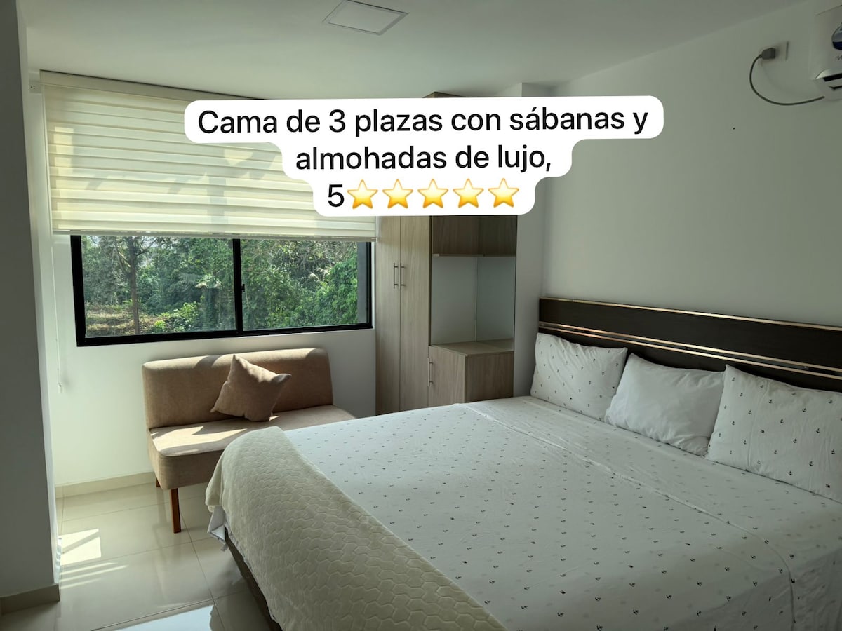 Atsipalaiduokite šiame prabangiame būste, kuris yra įtrauktas į mūsų aukščiausios klasės apartamentus! IŠSKIRTINIS PASTATO BASEINAS! Įsikūręs išskirtiniame Santo Domingo Aniñada rajone. Rio lelijoje, Mutualista Benalcazar, netoli visko, kas yra už 2 minučių kelio nuo apsipirkimo ir labai arti visų miesto vietų. Be to, turime garažą ir globėją visą parą veikiančioje automobilių stovėjimo aikštelėje, papildomą 50colių televizorių svetainėje ir kambaryje