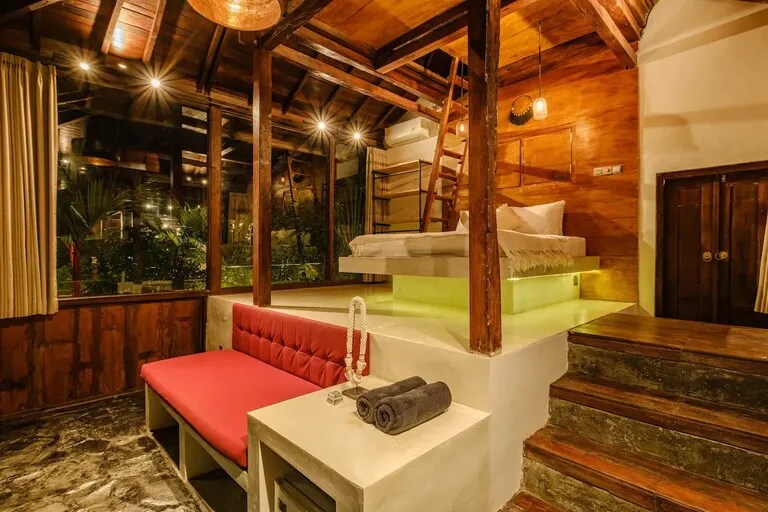 Atsipalaiduokite šioje ramioje, stilingoje erdvėje. Apsilankykite visiškai naujoje LOKU sodo viloje „1BR Garden Villa“, vos už kelių žingsnių nuo Kedungu paplūdimio. Šis ramus slėptuvė, apsupta vešlių žalumos ir ryžių laukų, derina modernų dizainą su atogrąžų žavesiu. Atsipalaiduokite privačioje terasoje ir užmigkite nuo gamtos garsų. Puikiai tinka poroms ar pavieniams keliautojams, ieškantiems poilsio, banglenčių sporto ir saulės — su bendru baseinu, sauna, ledo vonia ir sveika kavine. Ramus, stilingas, visai šalia, bet toli nuo minios