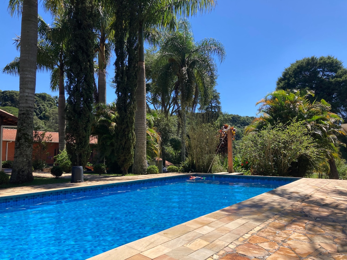 Kaina 20 svečių! Gali apsistoti iki 25 svečių, papildomas 120 Reais dienos mokestis Šis nuostabus kaimo namas yra vos už 1 valandos kelio nuo San Paulo centro, lengvai pasiekiamas greitkeliu Regis Bitencourt, visu asfaltuotu keliu. Namas yra apsuptas Atlanto miško ir yra rojus atsipalaiduoti hamake, mėgautis baseinu, žaisti baseiną ir kepti kepsnius su draugais, švęsti savo gimtadienį arba organizuoti susibūrimą! Prižiūrėtojas retkarčiais ryte patikrins baseiną.