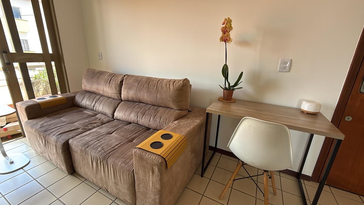Mėgaukitės šios modernios, ramios ir gerai įrengtos studijos San Karlose paprastumu ir komfortu, netoli USP, UFSCar, autobusų stoties, medicinos centrų ir pagrindinės miesto gatvės. Pastate yra 24 valandas per parą dirbantis konsjeržas, veido atpažinimo sistema ir elektroninė spyna, užtikrinanti saugumą. Bute yra oro kondicionierius, Wi-Fi ir įrengta virtuvė. Pastate yra mokamas garažas, skalbykla, bendra sporto salė ir speciali darbo vieta. Puikiai tinka trumpalaikėms arba ilgalaikėms viešnagėms.