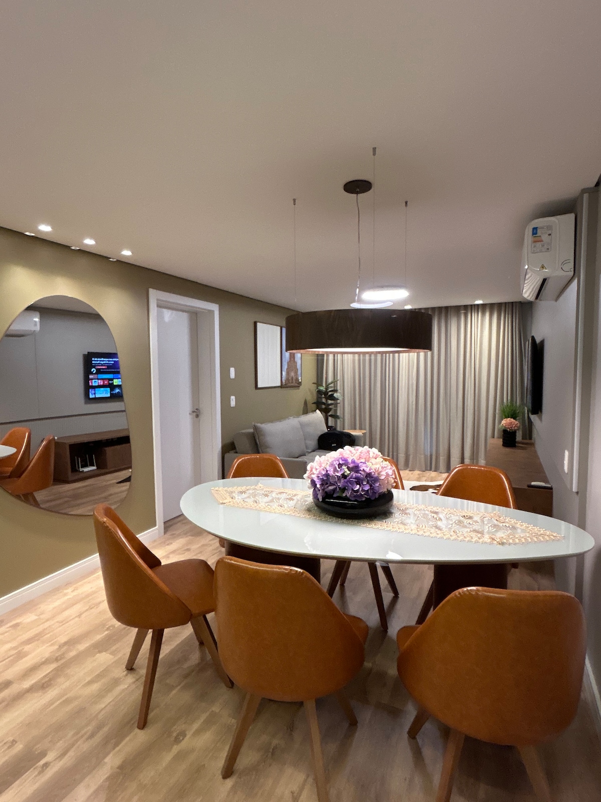 A 2 quadras da Rua Coberta, espaçoso, com 100m² de área útil, mobiliado e decorado para oferecer comodidade, bem-estar e conforto, 2 quartos (1 suíte), 2 banheiros, sala 2 ambientes, cozinha completa, churrasqueira na sacada, ar condicionado, 1 vaga de garagem coberta. Wi-Fi, 3 TVs Smart com canal aberto digital, Netflix e Youtube, roupa de cama, mesa e banho. Em condomínio fechado, portaria 24h, quadra de esportes e ampla área verde para lazer. Atende até 11 pessoas. Veja mais em "O espaço".