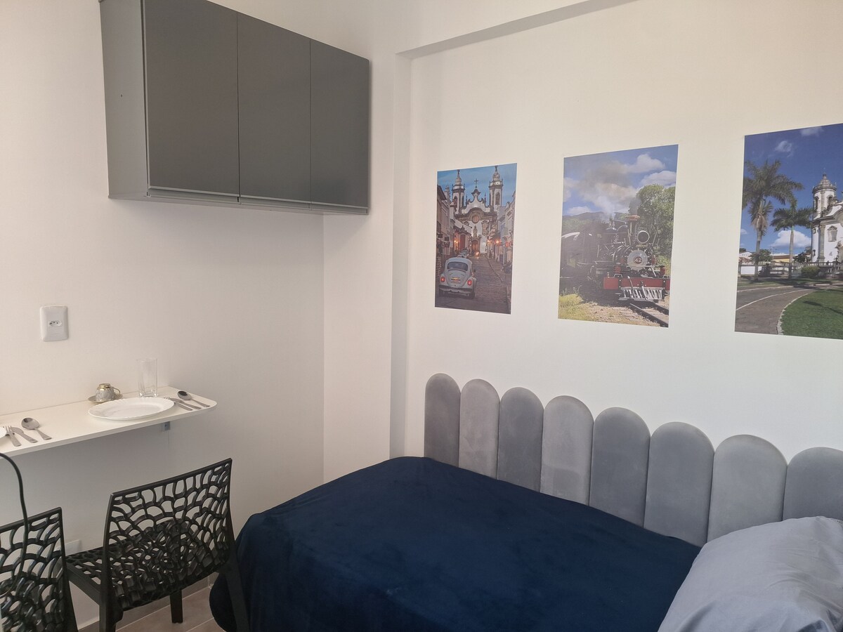 Studio acolhedor e funcional, localizado no coração do centro histórico de São João Del Rei. Estamos a poucos passos das principais igrejas barrocas, museus, casarões, mercados, restaurantes, cafés, comércios locais e demais pontos turísticos, sendo perfeito de conhece-los caminhando e fantástico para vir com uma boa companhia e curtir os eventos culturais com tranquilidade e segurança! Venha nos visitar! 🌷