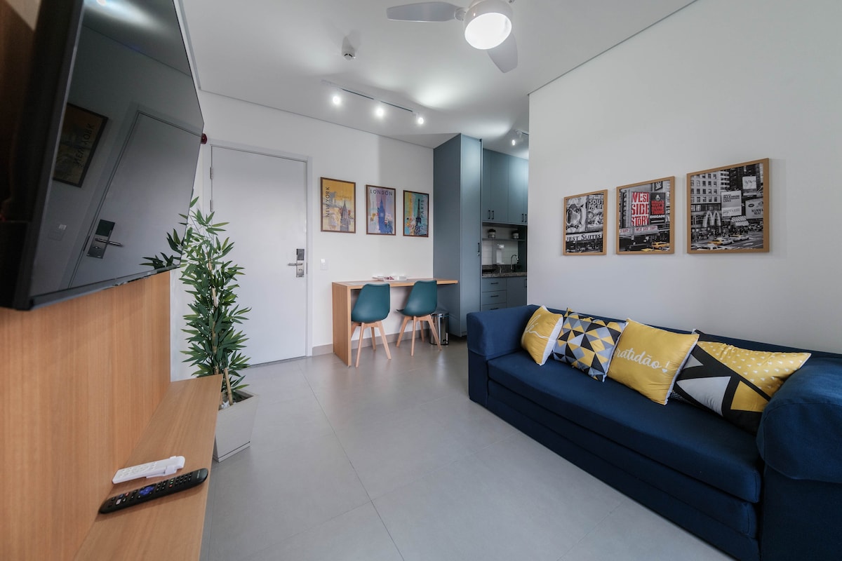 Sveiki atvykę į studiją 310 Think Home! Mūsų studija yra žavinga ir gerai įsikūrusi tarp Higienópolis ir Sta Cecília rajonų. Butas skirtas trumpalaikio svečių priėmimo režimui. Kondominiumas yra saugus, modernus, pastatytas 2024 m. ir jame veikia visa infrastruktūra: baseinas, sporto salė, „Coliving“, „Coworking“ ir visą parą veikiantys vartai. Esame už 15 minučių kelio automobiliu nuo AV Paulista, už 6 minučių kelio automobiliu iki Shopping Higienópolis ir už 5 minučių kelio nuo Santa Cecília metro.