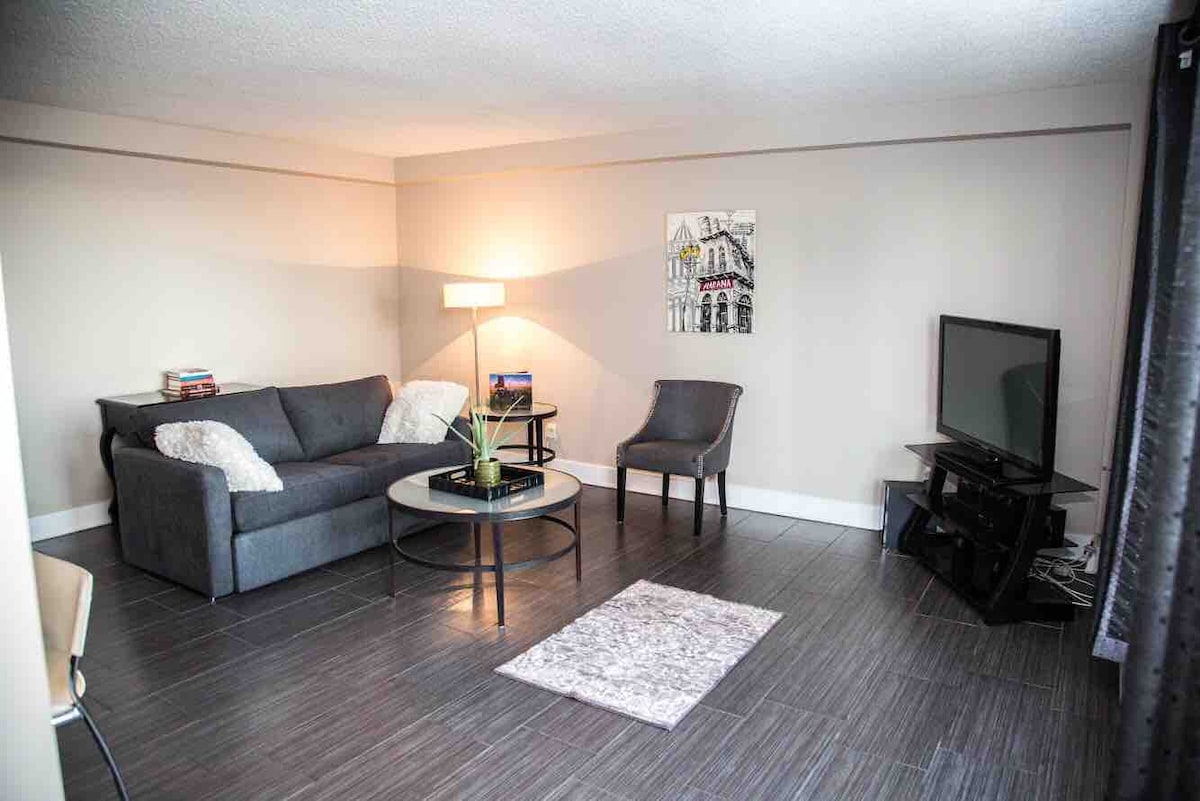 Šis stilingas lofto tipo liukso numeris yra ikoniškame Hadsono įlankos pastate Saskatūno centre. Šis pastatas buvo pertvarkytas iš universalinės parduotuvės į aukščiausios klasės lofto tipo kondominiumus. Būsite sužavėti kylančiomis lubomis, atvirų grindų planu ir šiltais, aukščiausios klasės baldais. Negalite pralenkti vietos, tik žingsniai nuo Midtown Plaza, parduotuvių, restoranų ir barų. ĮSPĖJIMAS: nereklamuojame ir nesiunčiame žinučių kitose platformose (socialiniuose tinkluose). Užsisakykite tik per Airbnb arba patikimas svetaines.