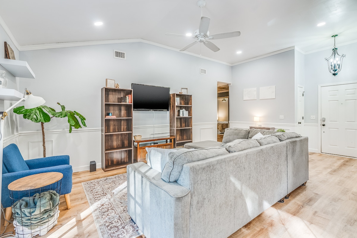 Vidutinis įvertinimas: 5 iš 5, atsiliepimų: 4Istorinis modernus vienaaukštis namas prie Daffin parko ir bananų