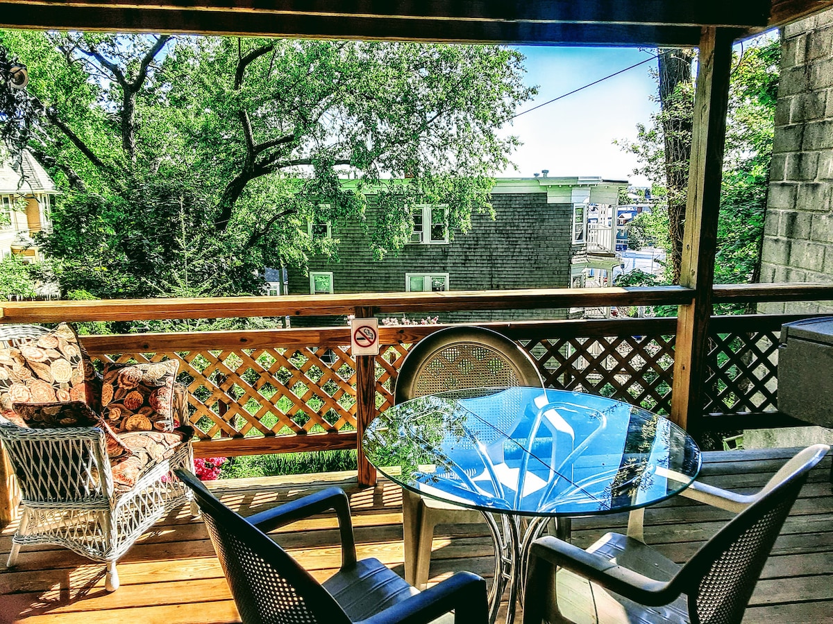 Deliciously cool in summer, cozy in winter, this one-bedroom suite with private galley kitchen, conservatory, private bathroom and living room, opens onto large deck, giant trees and hillside garden; on ground floor of charming Victorian hill-top house. Quiet residential neighborhood, fast walk to subway station, four stops to historic and financial center. STR443035