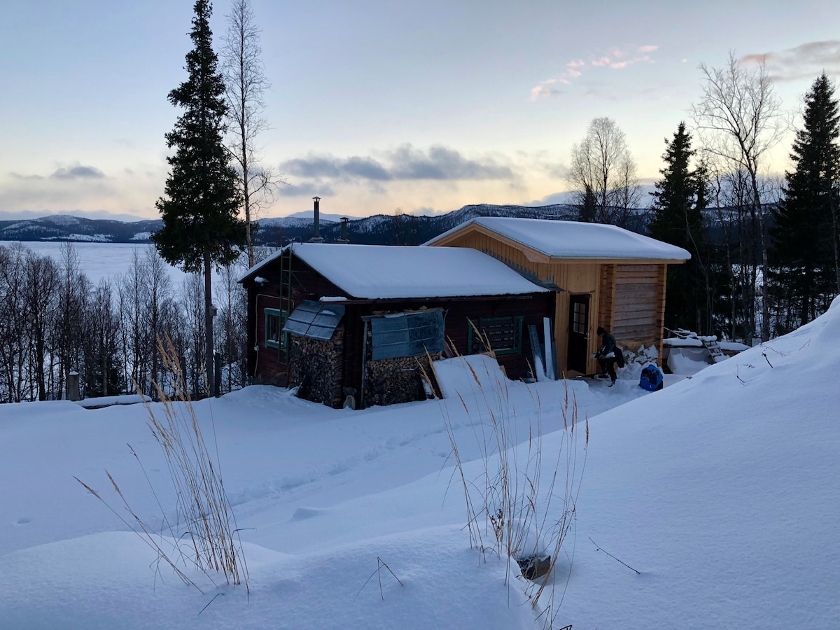 Namas Klöverfjället papėdėje, pirtis ir malkomis kūrenama viryklė