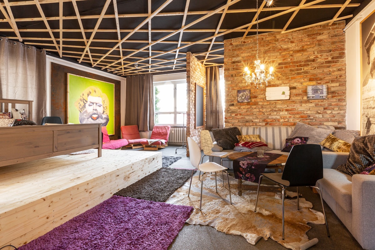 Gyvenimas su gamyklos žavesiu žavingo Gründerzeit rajono Chemnitz Kassberg papėdėje. Gyvenate jaukiame uždarame bute (apie 50 m²) po stogu. Gali apsistoti iki keturių svečių (du ant dvigulės lovos miegamajame, du ant 1,40 m sofos-lovos svetainėje). Įskaitant Wi-Fi. Viskas įrengta su didele meile ir detalių pojūčiu - jauskitės kaip namie. Nesvarbu, ar keliaujate trumpa, ar ilgesnė viešnagė, yra įranga.