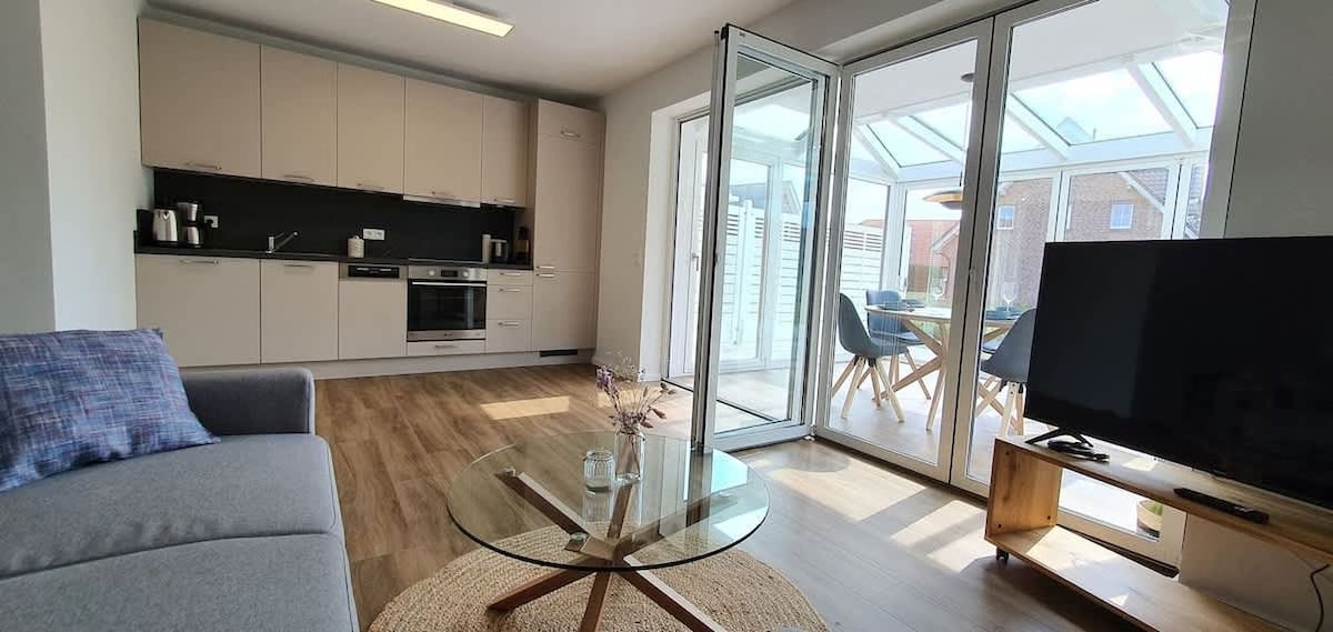 Hafenkoje 1 (pirmas aukštas) Labai jaukus, naujas ir moderniai įrengtas butas , įskaitant vidinę pirtį romantiškame uždarame kieme. Norėdami naudotis pirtimi, turėkite 3 x 2,00 € monetas. Tada veikia 2 valandas ir automatiškai išsijungia. Svarbiausia – didelė mobili lauko virtuvė. Smagus maisto gaminimas po atviru dangumi garantuotas! Netoli uosto ir Baltijos jūros su įvairiomis ekskursijų galimybėmis. Automobilį galima pasistatyti tiesiai priešais namą. Taip pat žr. skelbimą Hafenkoje2 (viršutinis aukštas)