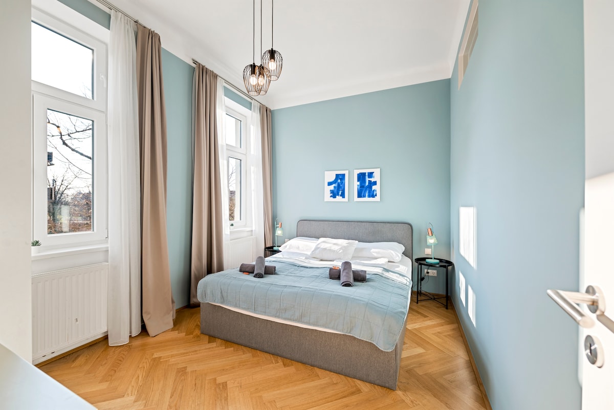 Šis ypatingas būstas pasižymi savo stiliumi ir įspūdžiais dėl savo nuostabių patogumų ir centrinės Vienos eismo situacijos! Puikiai tinka visiems, ieškantiems kelių stebuklingų dienų Vienoje🇦🇹 - 160 didelės lovos - 10 min. pėsčiomis iki pilies - Tyli vieta, bet centrinė - super viešas susisiekimas su visa Viena - su 42 m² pakankamai vietos, kad jaustumėtės patogiai