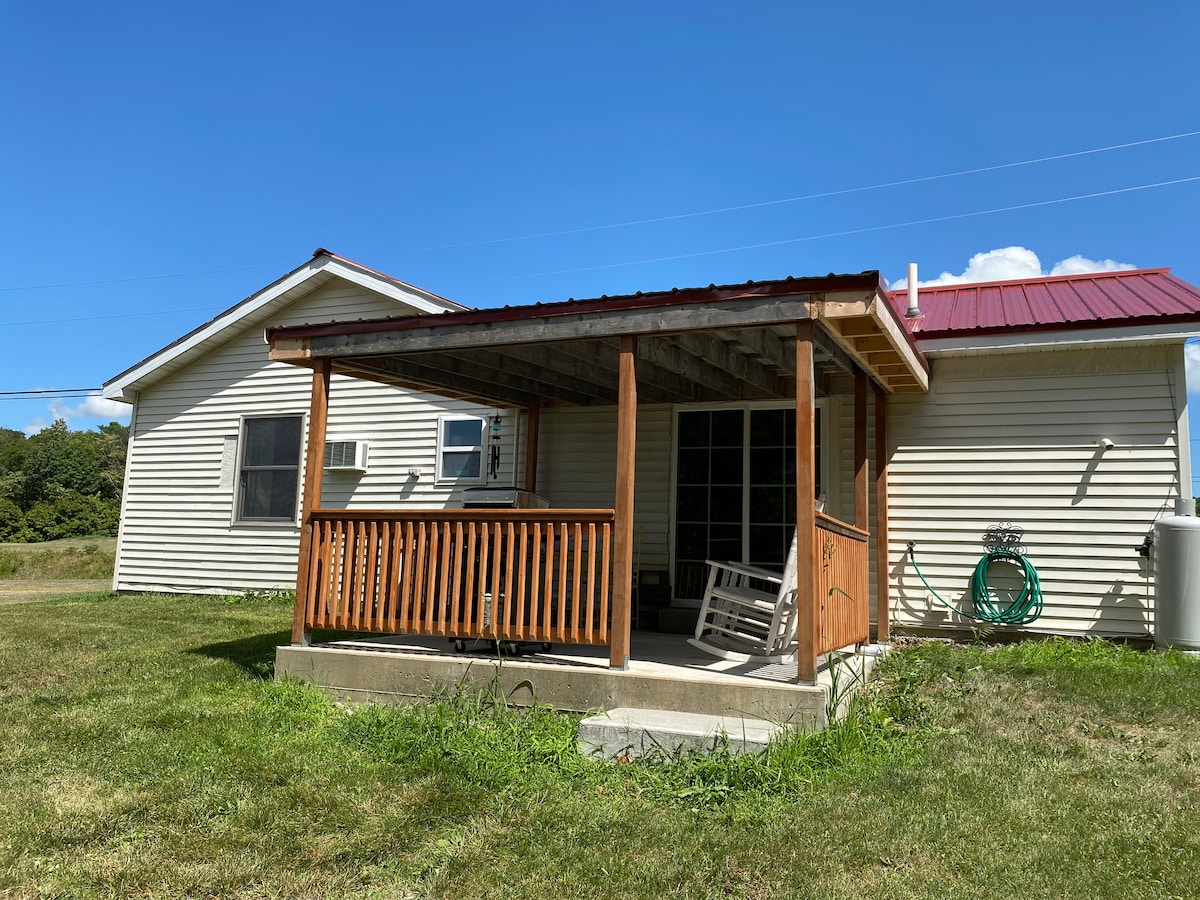 Patirkite jaukią trobelę šalies aplinkoje su žvaigždėtomis naktimis ir laukine gamta. Ši 480 kv. pėdų trobelė bus pilnai aprūpinta patogumais ir dar daugiau! Išmanusis televizorius ir elektrinis židinys papildomam jaukumui. Dengta veranda, skirta mėgautis tomis vasaros audringomis dienomis/naktimis. Taip pat turėsite laužavietę, kėdes ir propano kepsninę. Vos už kelių mylių nuo vietinių vyno daryklų, alaus daryklų, pėsčiųjų takų, restoranų ir Seneca ežero su vandens pramogomis. Peržiūrėkite kitą mūsų skelbimą! *TROBELĖJE GALI APSISTOTI IKI 2 SVEČIŲ!*
