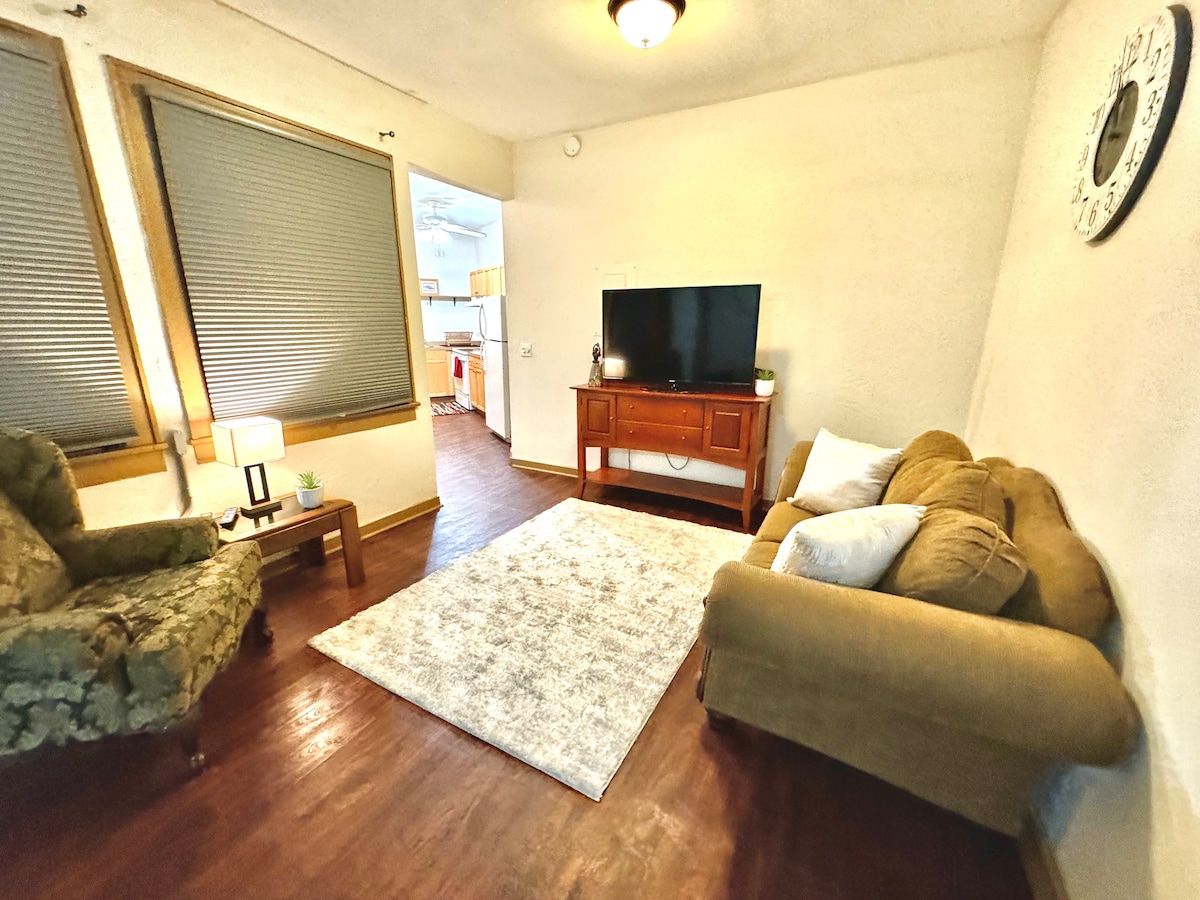 Studio 102, esanti Sebring miesto centre, yra visai kitoje kelio pusėje nuo „Postcard Mural“ ir „Sophie's Cafe“, iš kurios atsiveria priekiniai HGTV namų miesto perėmimo vaizdai! Būkite vos už kelių žingsnių nuo linksmybių pilnai įrengtoje viešnagėje Audrey's Place. Švari,patogi centrinė erdvė. Greitas belaidis internetas, lauko balkonas, visa virtuvė,skalbyklė/džiovyklė šiame nebrangiame būste. Lengvai pasieksite Sebring lenktynių trasą,vietines kavines,barus ir festivalius,ligonines,apsipirkimą,pramogas,šeimos pramogų vietas ir valstybinius parkus.