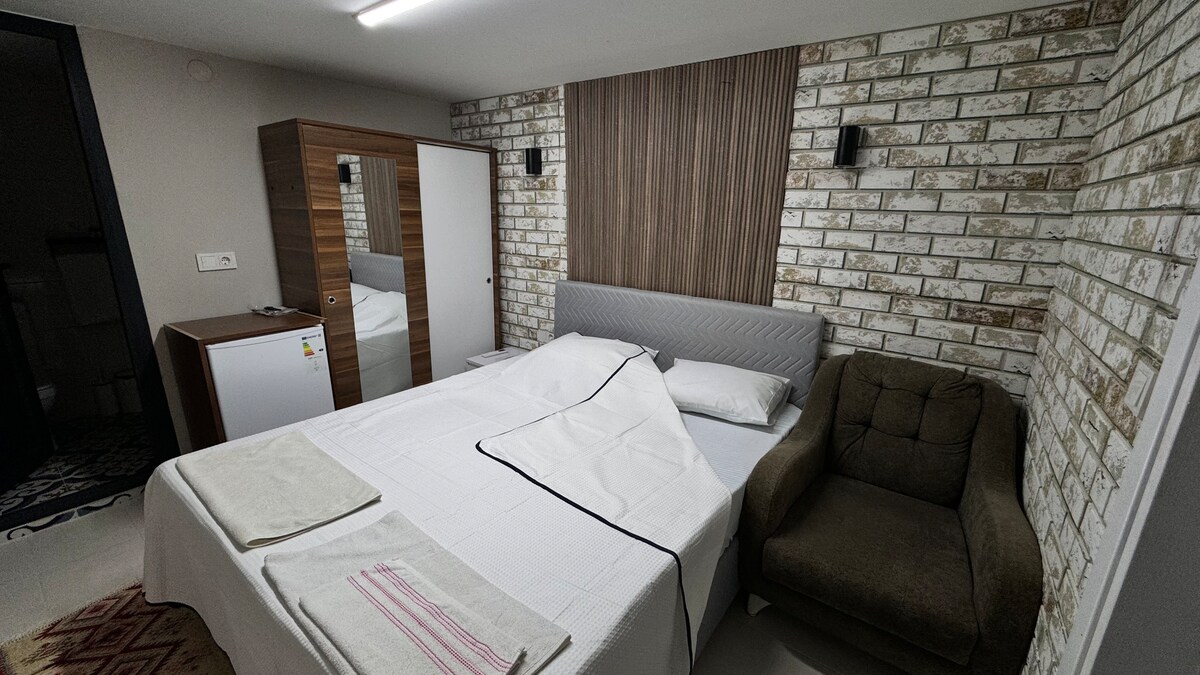 Cozy double room in the heart of Selçuk. Features 1 comfortable double bed, private bathroom, air conditioning, and free WiFi. Within walking distance of the train station, Ephesus Museum, and bus stops. Nearby are restaurants, shops, and the Saturday market. Breakfast available for an extra fee. Ideal for couples or solo travelers looking for comfort and a central location.