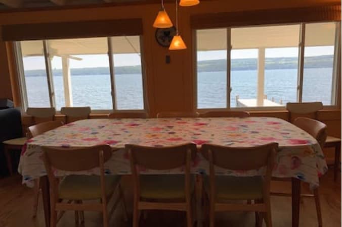Įsikūręs Pirštų ežerų ir Senekos ežero vyno tako širdyje, rasite puikią kelionę prie ežero esančiame šiame naujai atnaujintame 3 miegamųjų, 2 vonių kotedže. Mėgaukitės rytine kava privačiame doke su vaizdu į Senekos ežerą. Jaukiai apsistokite šalia laužo ir mėgaukitės stulbinančiu naktiniu vaizdu. Paleiskite baidares, kad mėgautumėtės Senekos ežero vandenų ramybe ir ramybe. Šiame kotedže yra viskas, kad šeima ar draugų grupė galėtų atsipalaiduoti ir atjaunėti. Vos kelios minutės kelio nuo vyno tako!