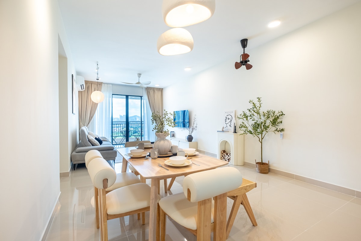 Sveiki atvykę į Arches & Amber – apgalvotai suprojektuotus trijų miegamųjų namus, kuriuose šilti žemiški tonai dera su šiuolaikiniu komfortu. Kiekviename miegamajame yra karališko dydžio lova, todėl jis puikiai tinka šeimoms, draugams ar verslo keliautojams, ieškantiems ramios viešnagės. Mėgaukitės jaukia erdve, stilinga valgomojo zona ir ramia atmosfera po ilgos dienos mieste. 📍 5 min. kelio automobiliu iki Jinjang MRT ☕ 5 min. iki vietinių kavinių ir užkandinių Puikiai tinka svečiams, kurie vertina komfortą, patogumą ir ramų poilsį netoli KL svarbiausių vietų.