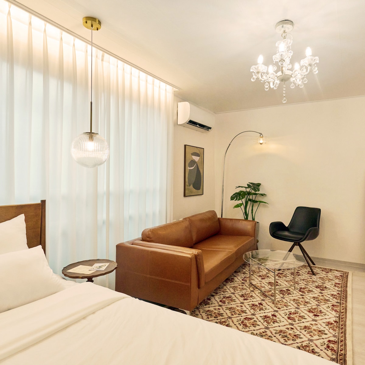 Ši erdvė, esanti pačioje Seulo širdyje, pasižymi tiek patogia vieta, tiek stilingu stiliumi. Tai naujas pastatas 2023 m. antroje pusėje ir aukščiausios klasės gyvenamasis viešbutis. Yra skalbimo mašina ir džiovyklė, dvigulė lova ir sofa-lova bei aukšto lygio virtuvės įranga su vandens valytuvu ir kavos aparatu. Erdvė yra erdvi, o dekoras - prabangus, todėl pasirūpinome, kad galėtumėte mėgautis didžiausiu atsipalaidavimu. Stengsimės, kad viešnagės metu jaustumėtės patogiai.