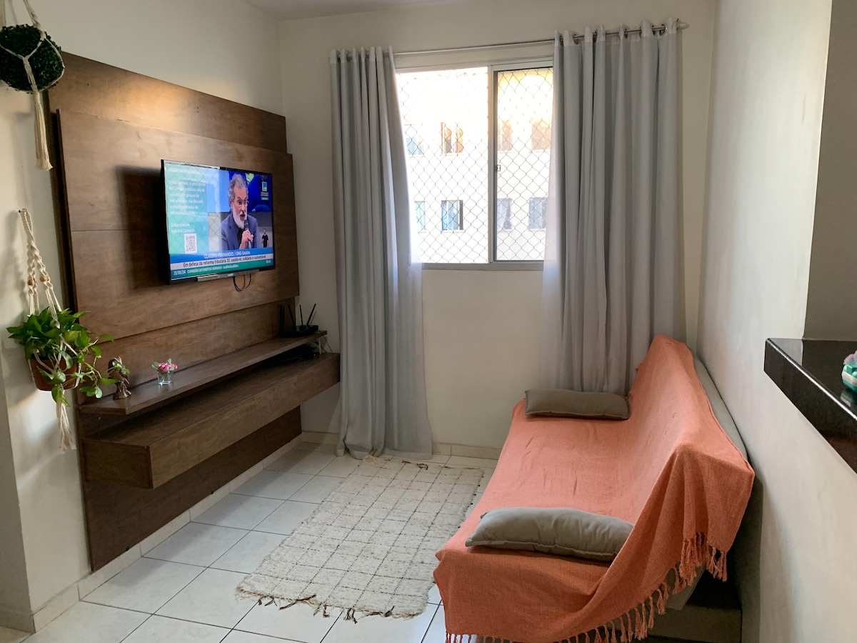 Sveiki atvykę į Vitorijos salą, vidinį butą iki 3 žmonių antrame laiptų aukšte. Su oro kondicionieriumi, skalbykle ir džiovintuvu, jauku, puikiu vėdinimu, biuru ir labai dideliais kambariais. 15 minučių pėsčiomis nuo paplūdimio, 15 minučių automobiliu iki oro uosto ir „Shopping Norte Sul“, 4 minutės nuo BH prekybos centro ir autobusų stotelės. Lengvas būdas keliauti, įskaitant „Uber“.
