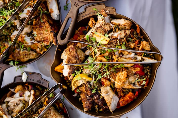 Leiskite svečiams mėgautis virėjo paruoštu maistu, paruoštu ugniai su išsamiomis pašildymo instrukcijomis, garnyru ir vienkartinėmis priemonėmis, kad pramogos būtų be rūpesčių.