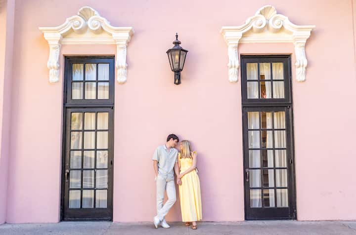 Smagi ekskursija pėsčiomis ir profesionali fotosesija tyrinėjant gražias Čarlstono spalvas! Jūsų profesionalus fotografas padarys jūsų nuotraukas žymiausiose Čarlstono vietose, įskaitant legendinę Vaivorykštės eilę.