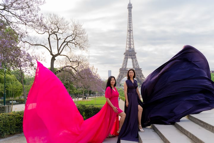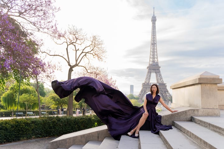 Įtraukta 1 suknelė, Eifelio bokšto vieta ir 15 kūrybiškai redaguotų nuotraukų.