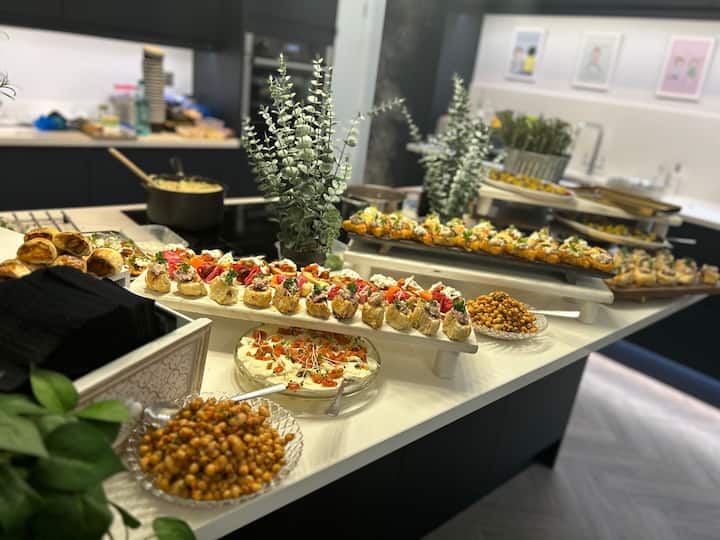 Mėgaukitės pasirinkimais, pvz., karštais ir šaltais bufetais, meze ir kepsnine, kad sukurtumėte kasdienę aplinką.