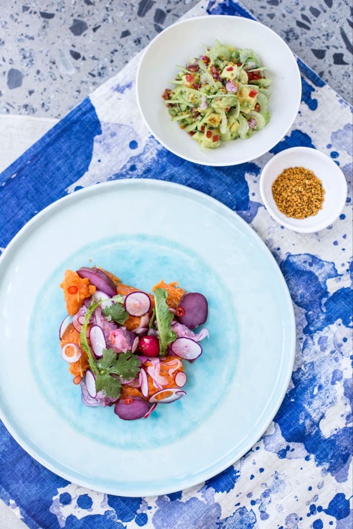Valgykite kuruojamame užkandžių, maitinimo tinklo ir desertų meniu, įkvėptas šviežių, sezoninių ingredientų.