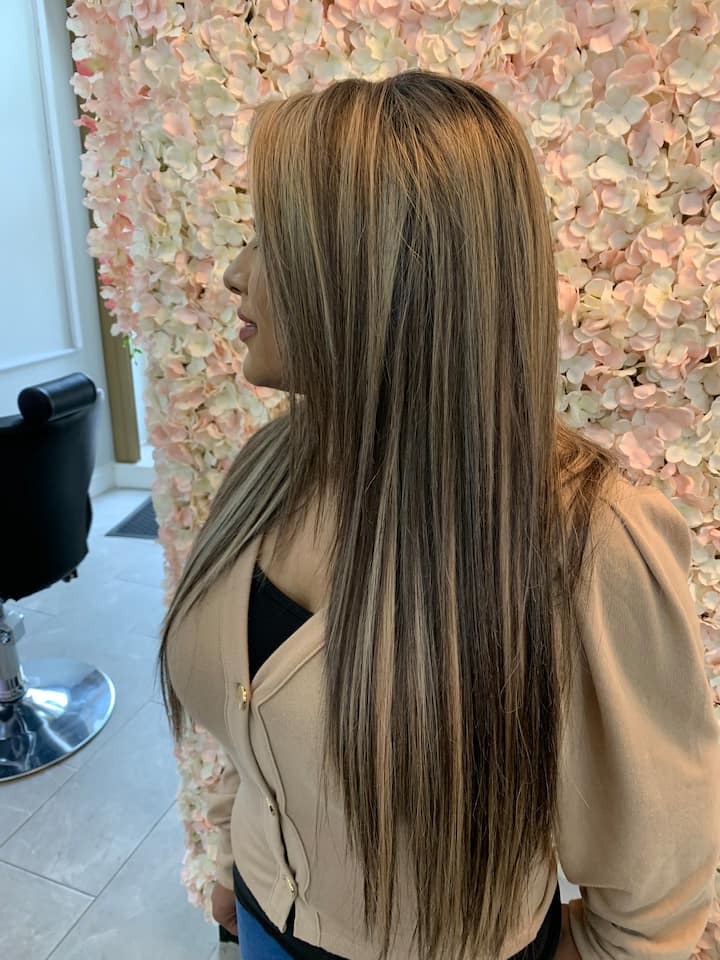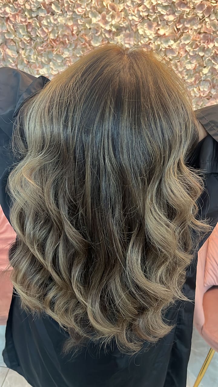 Šis pasiūlymas pasižymi laisvos formos plaukų dažymo technika, kuri sukuria laipsnišką, natūraliai atrodantį išskirtinį efektą.