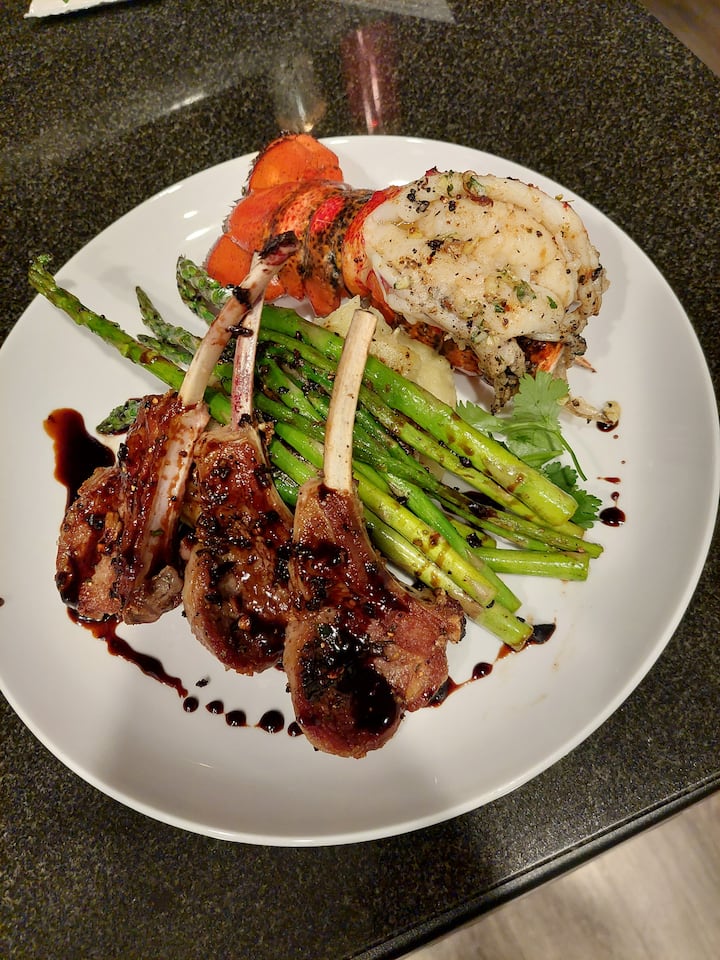 Pasirinkite iš sezoninio pasirinkimo, į kurį įeina užkandžiai, salotos ir pagrindinis patiekalas. Už papildomą mokestį pridėkite saldų skanėstą.