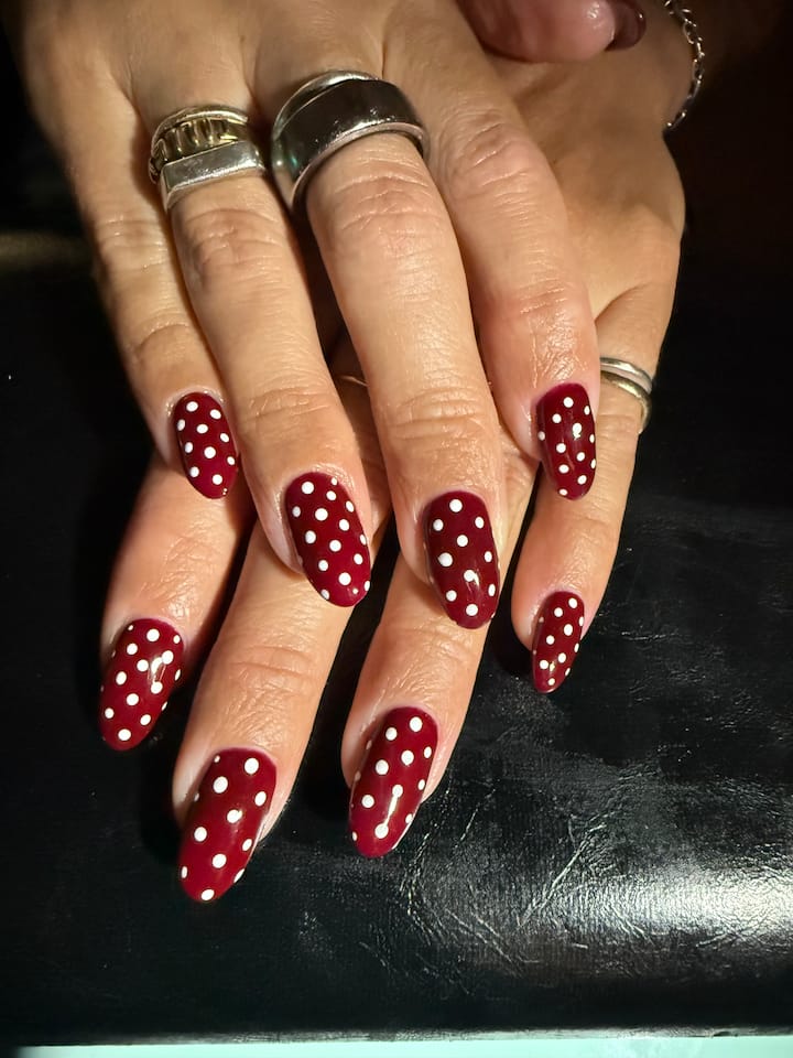 Gelinis manikiūras su paprastais nagų piešiniais, įskaitant linijas, taškus ir klasikinius prancūziškus galiukus.