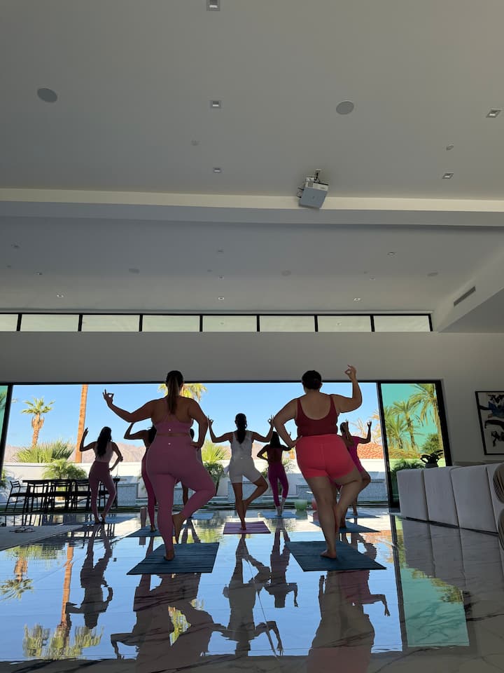 Dėstiau Power Yoga Palm Springs ir vedė sesijas nuotakoms ir jų vakarėliams.