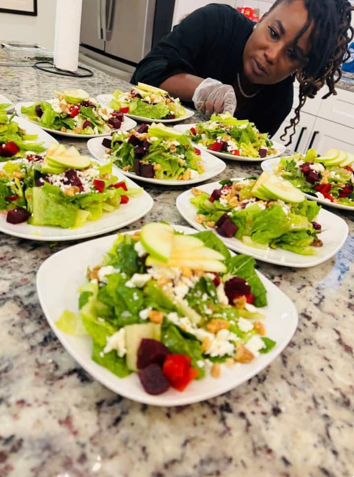 - dosnios virėjo pagamintų patiekalų lėkštės, kurias ketinama perduoti, dalytis ir mėgautis. Nuo ryškių salotų iki lėtai auginamos mėsos ir malonių pusių - kiekvienas kursas sukurtas taip, kad jaustųsi kaip šventė namuose, pasižyminti elegancijos pojūčiu. Komfortas, bendruomenė ir nepamirštamas skonis — viskas lengvai pasiekiama.