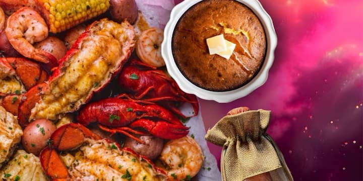 Mūsų geriausias pasimatymų vakare paketas. Du sveiki omarai, 1 svaras laukinių krevečių, rūkyta andouille dešra, sviestinės bulvės ir kukurūzai – viskas pagardinta jūsų pasirinktu garsiuoju „Mixin' Sauce“ padažu. Mes įtraukiame viską: seilinukus, pirštines ir nemokamą putojančio rožinio butelį. Praleiskite vakarienės skubėjimą Vakarų Holivude ir mėgaukitės rafinuotu, įsimintinu maistu be jokio valymo streso tiesiai savo nuomojamame būste. Puiki romantiška šventė dviem asmenims.