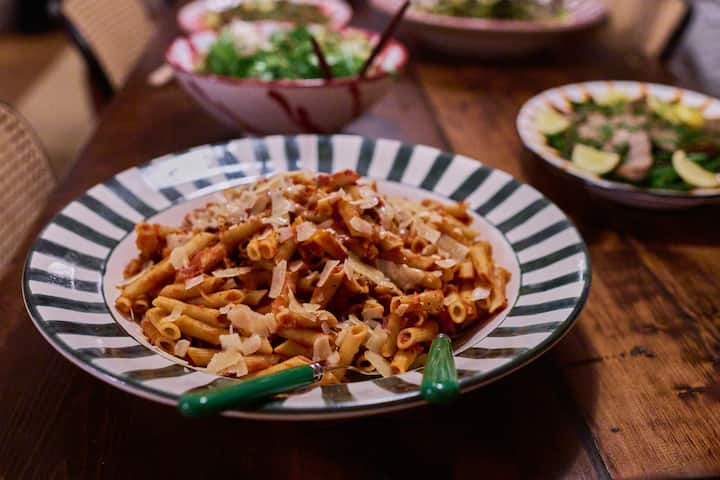Italų „trattoria“ atneša mėgstamiausios vietos rajone šilumą ir lengvumą tiesiai ant jūsų stalo. Šiame šeimyniškame pokylyje rasite tokių patiekalų kaip auksinės spalvos mini picos, traški vištiena su parmezanu, rankų darbo makaronai ir daržovės su klasikiniu cacio e pepe. Tai jaukus, trokštamas komfortas – itališkas svetingumas, Culinistas stiliaus. Jūsų šefas gamins naudodamasis jūsų įranga, patieks jūsų indais ir prieš išeidamas išvalys virtuvę.