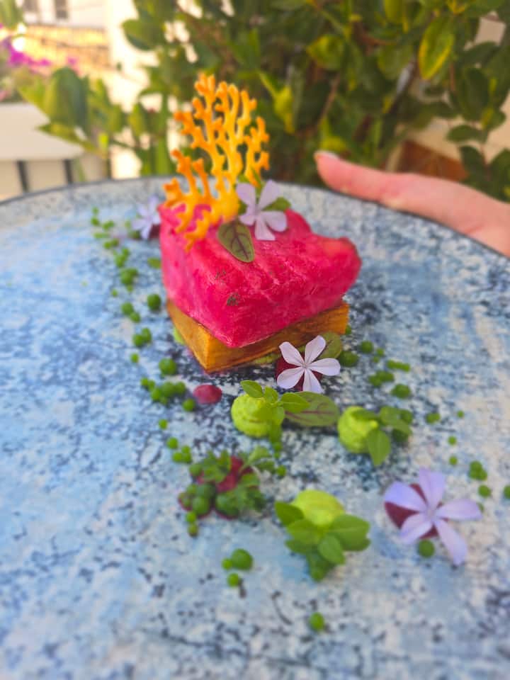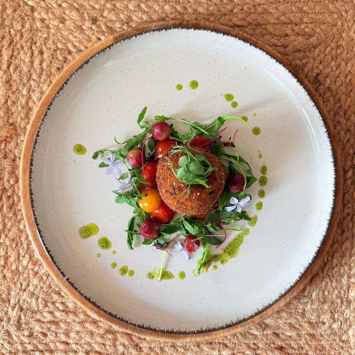 Augalinės kilmės patiekalų kelionė po Viduržemio jūrą per septynis patiekalus. Ispanijos žaliasis gaspačas su pistacijų trupiniais, Italijos keptų burokėlių ir pankolių karpačas, Graikijos plaktos tofu „feta“ su keptomis vynuogėmis ir pistacijomis, Libano lęšių ir baklažanų kofta, Tuniso harisos žiediniai kopūstai, Ispanijos Galisijos šparagų ir grybų iešmeliai su čimičuriu ir Prancūzijos pistacijų bei kokosų morengas – gyvybingi, jausmingi ir kupini saulės.