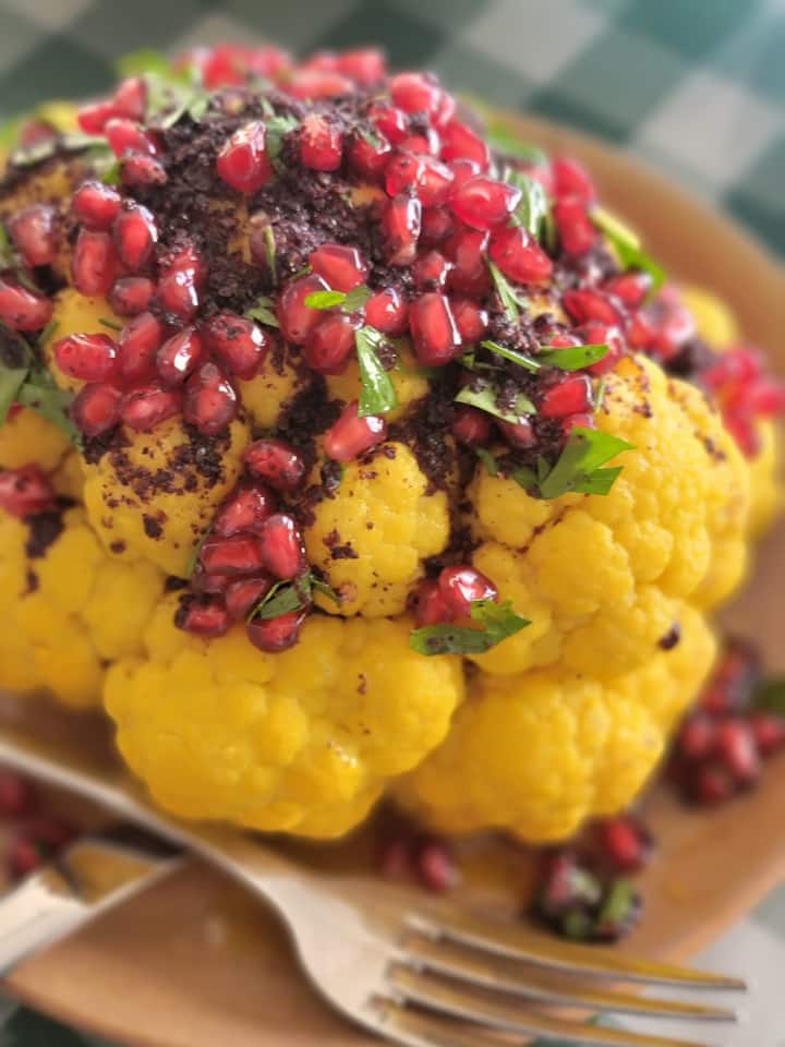 Mėgaukitės šia sočia veganiška puota, skirta dalintis, kurios sudėtyje yra tokių patiekalų kaip kepti žiediniai kopūstai su dukah padažu ir rūkytu alyvuogių aliejumi; keptų burokėlių salotos su apelsinais, graikiniais riešutais ir klevo sirupu; maži sluoksniuotos tešlos bandelės su saldžiosiomis bulvėmis ir špinatais, aštrūs žieminiai čatniai; lėtai virtas grybų ir kaštonų troškinys su kreminiu alyvuogių aliejaus tyrės padažu; troškinti raudonieji kopūstai; traški duona; ir karšta slyvų bei kriaušių trupinis su veganišku airišku kreminiu kremu.Tai sotus, šiltas ir sielos pilnas patiekalas.