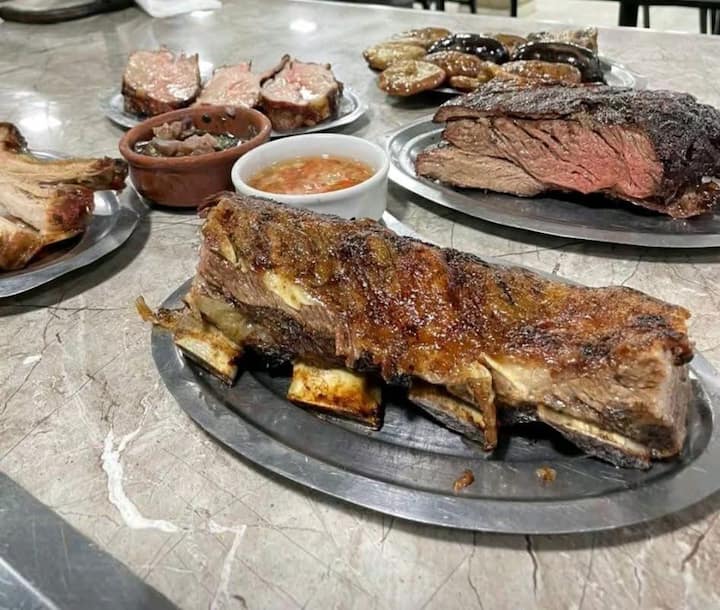 Ant grotelių kepta mėsa