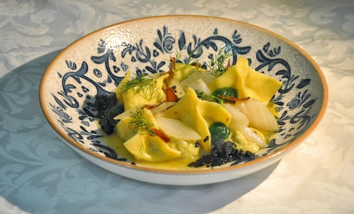 Mėgaukitės žiemos skoniais rinkdamiesi iš 2 išskirtinių užkandžių, įskaitant subtilius artišokų ir rikotos patiekalus. Po to – 2 rankų darbo pirmieji patiekalai, pvz., trumų tagliolini arba sodrus rizotas. Pasirinkite pagrindinį patiekalą iš minkštos mėsos arba vegetariško štrudelio ir užbaikite vienu dekadentišku desertu, pvz., tiramisu arba „Tarte Tatin“.